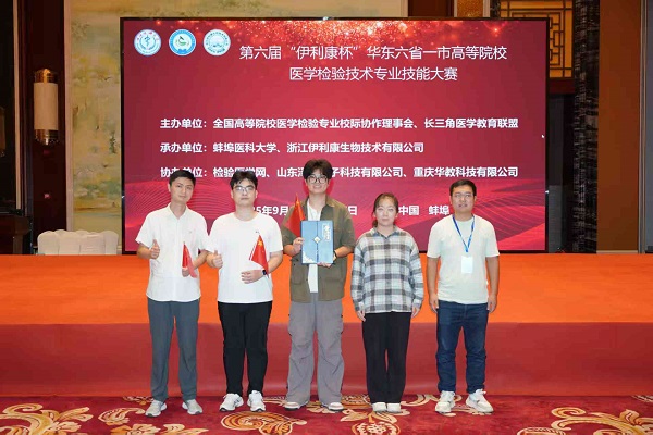 近日,第六届华东六省一市高等院校医学检验技术专业技能大赛在蚌埠医科大学圆满落幕。本次大赛由全国高等院校医学检验专业校际协作理事会主办,蚌埠医科大学承办,吸引了来自上海、江苏、浙江、安徽、福建、江西、山东六省一市近30所高校的顶尖学子同台竞技。阜阳医学院代表队凭借扎实的理论功底、娴熟的操作技能和出色的临场发挥,最终脱颖而出,荣获团体三等奖,充分展现了我校医学检验专业学子的卓越风采和人才培养的雄厚实力。