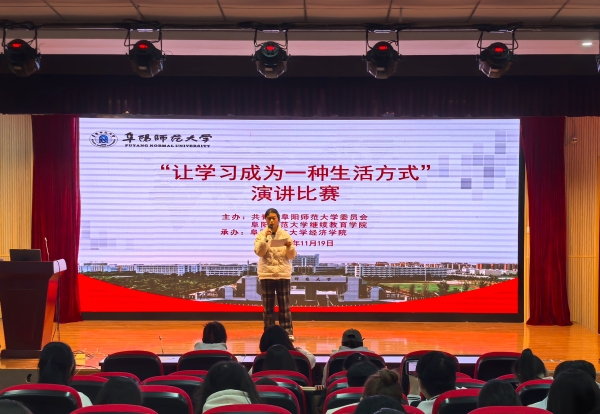 为深入贯彻终身学习理念,引导青年学子在学思践悟中锤炼品格、增长才干,11月19日下午,由共青团阜阳师范大学委员会、继续教育学院主办,经济学院承办的“让学习成为一种生活方式”主题演讲比赛在清河校区举行。
