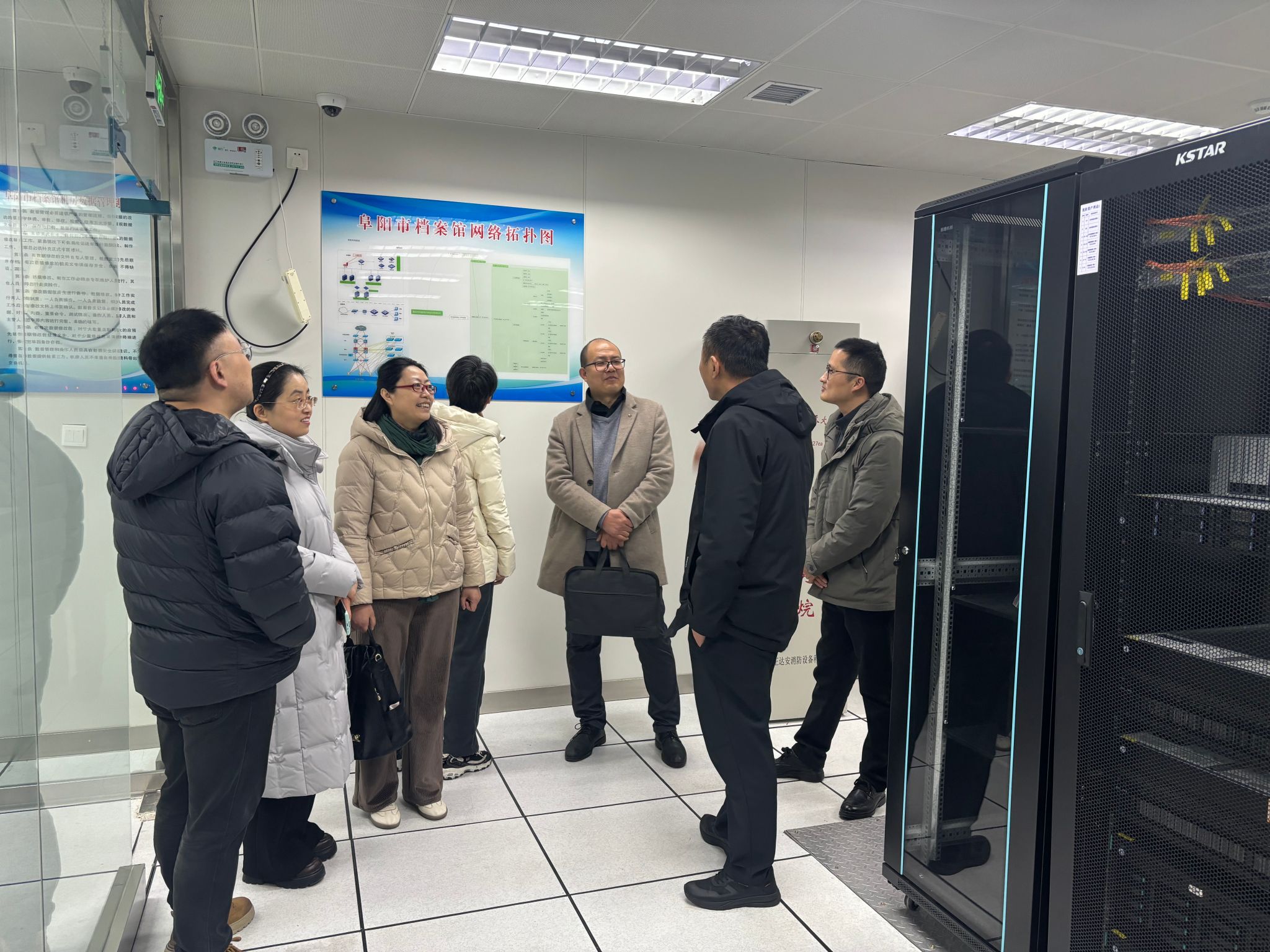 调研期间,孙道助一行先后实地参观了阜阳市档案馆爱国主义教育图片展、档案查阅服务大厅、数字化加工车间、智能档案库房及信息化机房,详细了解馆藏档案集中整理、安全保管、数字化扫描、电子档案保存利用等全流程工作规范。