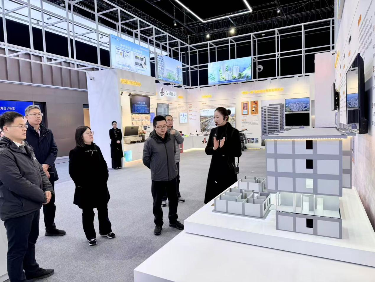 在安徽省建筑科学研究设计院,商学院一行参观了安徽省建筑抗震减灾与绿色运维重点实验室,深入了解了建筑科技前沿发展与工程实践应用的业务板块。宋东锋重点介绍了学院党建与事业发展融合推进的基本情况,提出了双方在平台共建、人才共育、产学共研、项目共担、技术共攻、成果共享等方面进行全方位合作的愿景和期待。张雪梅详细介绍了学院的学科建设、人才培养、科研创新和实践成果。设计院院长刘春雷及副书记、副院长储海锋等分别围绕当前行业发展趋势,阐述了各业务板块发展情况、人才需求标准及员工培养体系。双方就联合开展课题研究、共建实习实训基地、推动课程内容与行业标准对接等方面达成初步合作意向。会后,商学院一行还参观了该院主办的“皖好房”科技展,重点交流了交通枢纽与住宅配套设施的智慧化融合应用。