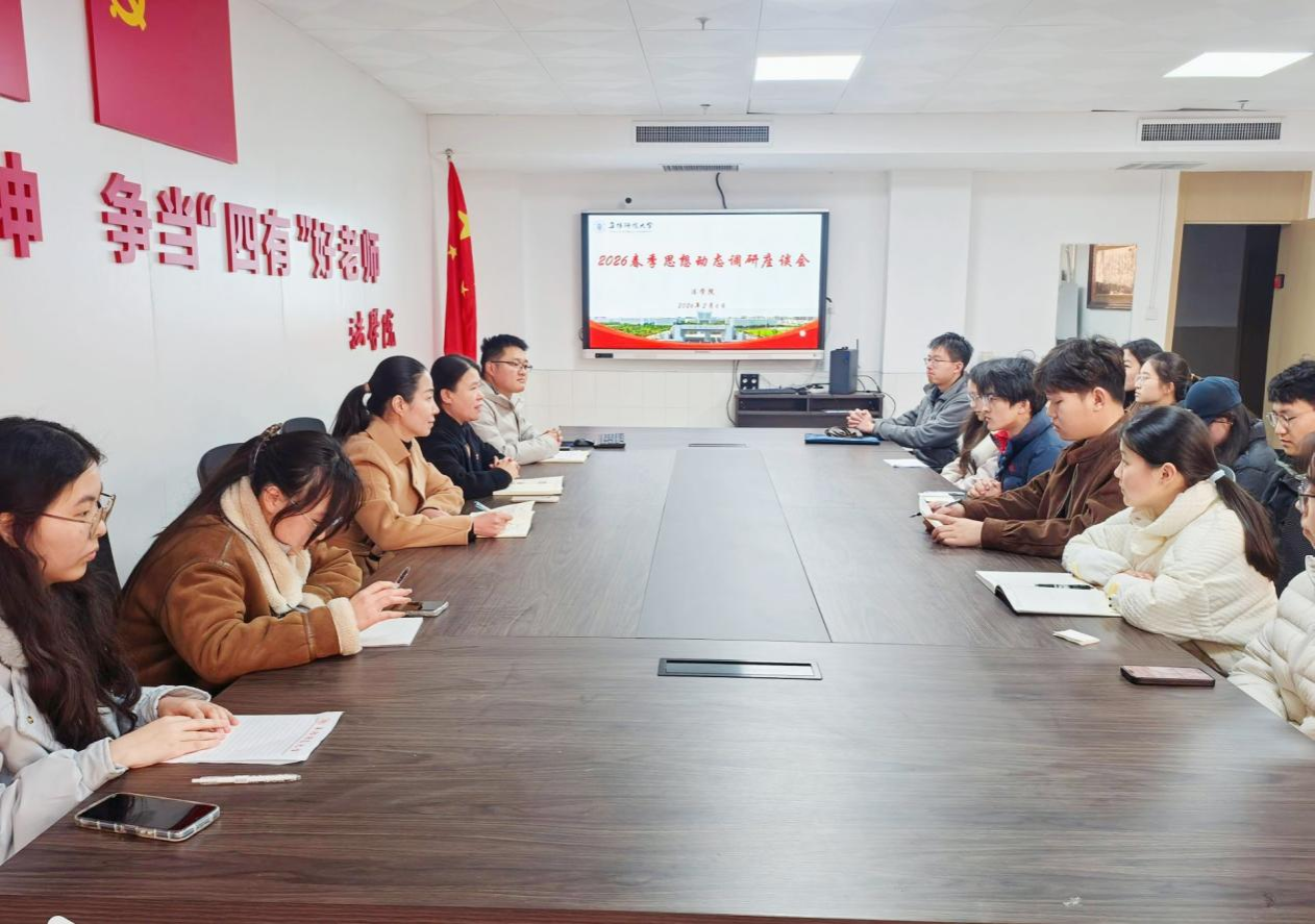 为全面准确掌握新学期学生思想动态,深入把握青年成长成才规律,精准服务学生发展需求,近日,法学院以“全覆盖、深交流、解难题”为原则,开展2026年春季学期学生思想动态调研活动。活动采取座谈交流、宿舍走访相结合的形式进行,覆盖本、硕各年级,为师生沟通搭建起坚实桥梁。