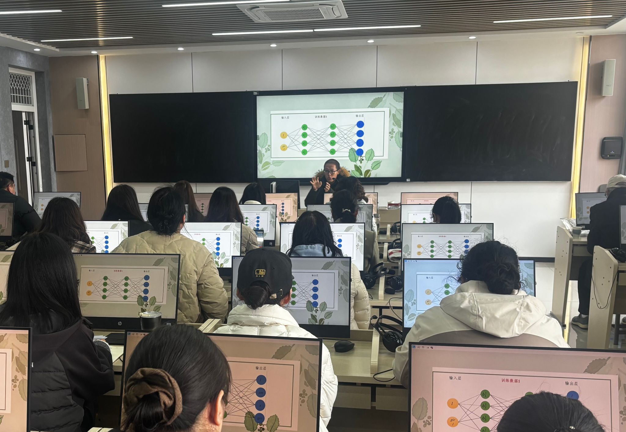 第二场培训会由张韬博士开讲,为教师们带来了一场关于人工神经网络的前沿分享。他讲解了数据分析在当代科研中的核心价值与基本方法,重点探讨了数据分析技术如何赋能外语学科,特别是在检测合理的调查问卷,文学量化分析等领域的潜在应用场景。会后又解答了教师们如何学习Python等问题,打破了学科壁垒,为教师们利用人工智能技术开展外语教科研研究提供了崭新的思路。