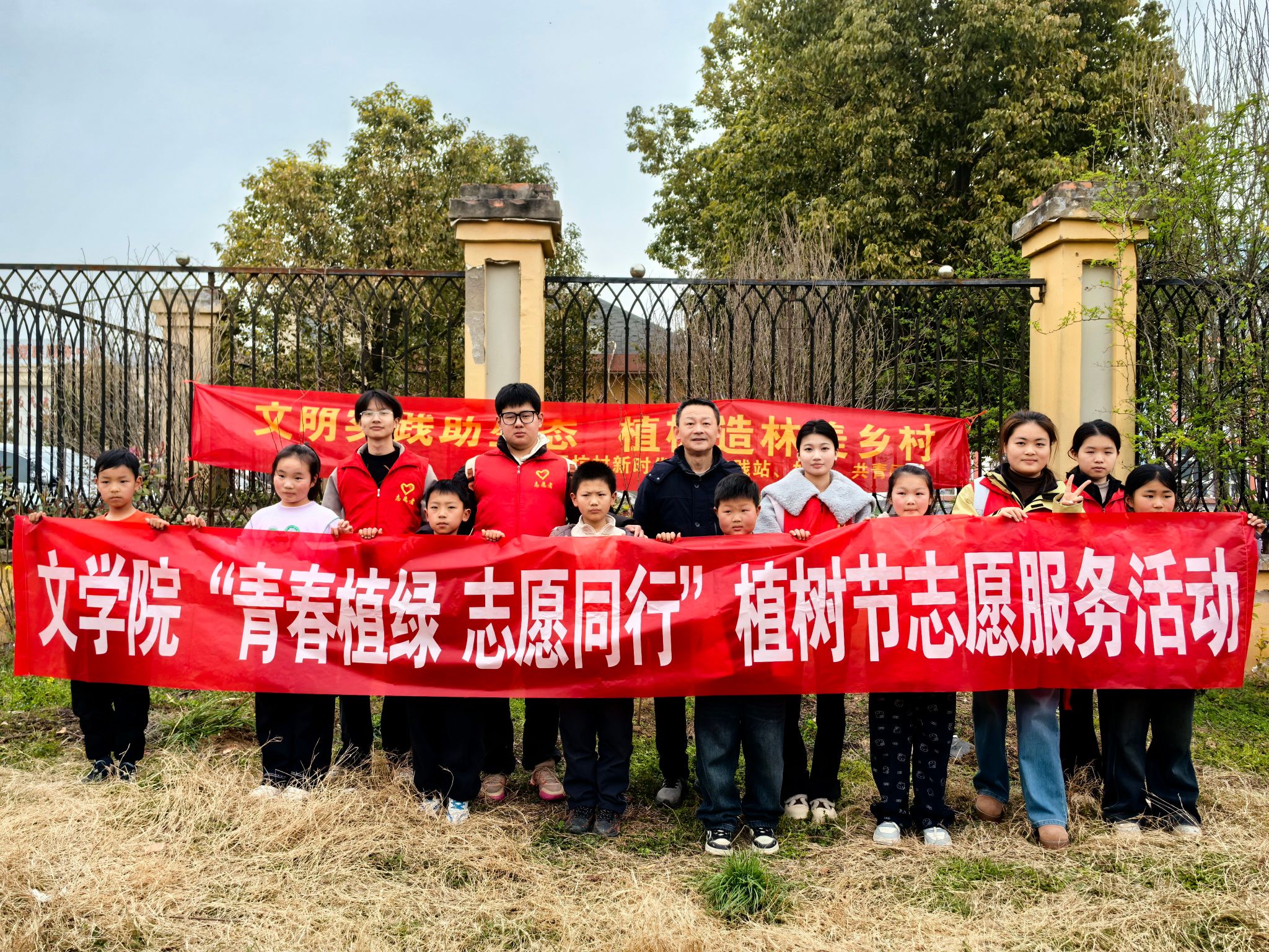 3月11日下午,在第48个植树节来临之际,文学院组织志愿者前往阜阳市颍州区九龙镇丁营小学开展“青春植绿 志愿同行”义务植树活动。