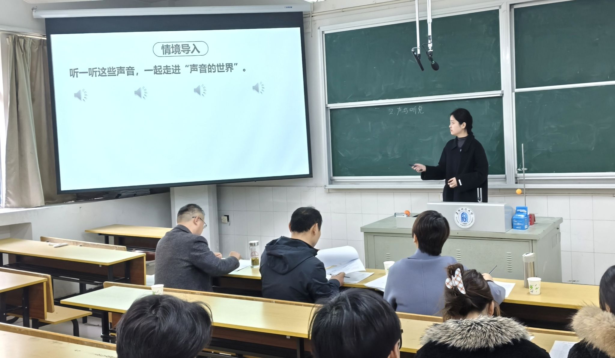 学院为专家颁发了聘任证书,并就物电学院本次面试考核展开了细致的讨论。测试分上午、下午两场,共八组,包括教学设计、课件制作、模拟授课(含板书)、现场答辩等四项内容。面试结束后,考官们逐一对学生的表现进行了点评。