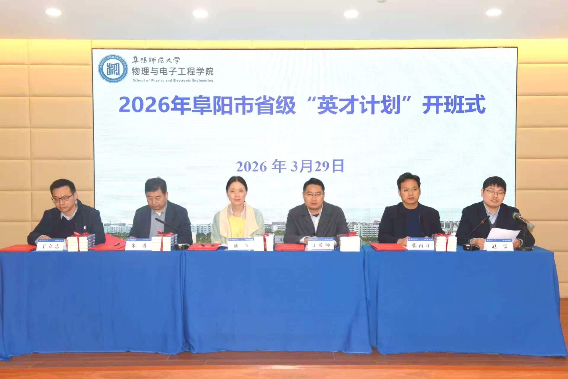 3月29日,2026年阜阳市省级“英才计划”开班仪式在阜阳师范大学西湖校区新材料工科楼二楼报告厅举办。阜阳市科协、阜阳市教育局、阜阳师范大学发展规划处、科研处、物理与电子工程学院领导出席了开班式,“英才计划”学子、“英才计划”拓展学校学子、省市级“英才计划”导师约90人参加了开班式。开幕式由市科协党组成员、副主席赵雷主持。