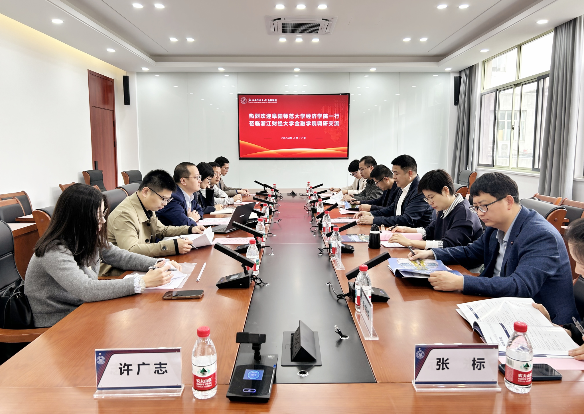 余许友介绍了阜阳师范大学经济学院的基本办学情况与发展特色,重点围绕学科专业建设、课程体系设置、实验室建设、师资队伍培养、产教融合及研究生培养等方面进行了交流。他表示,希望通过此次调研,学习浙江财经大学在相关领域的先进做法,推动学院内涵式发展。