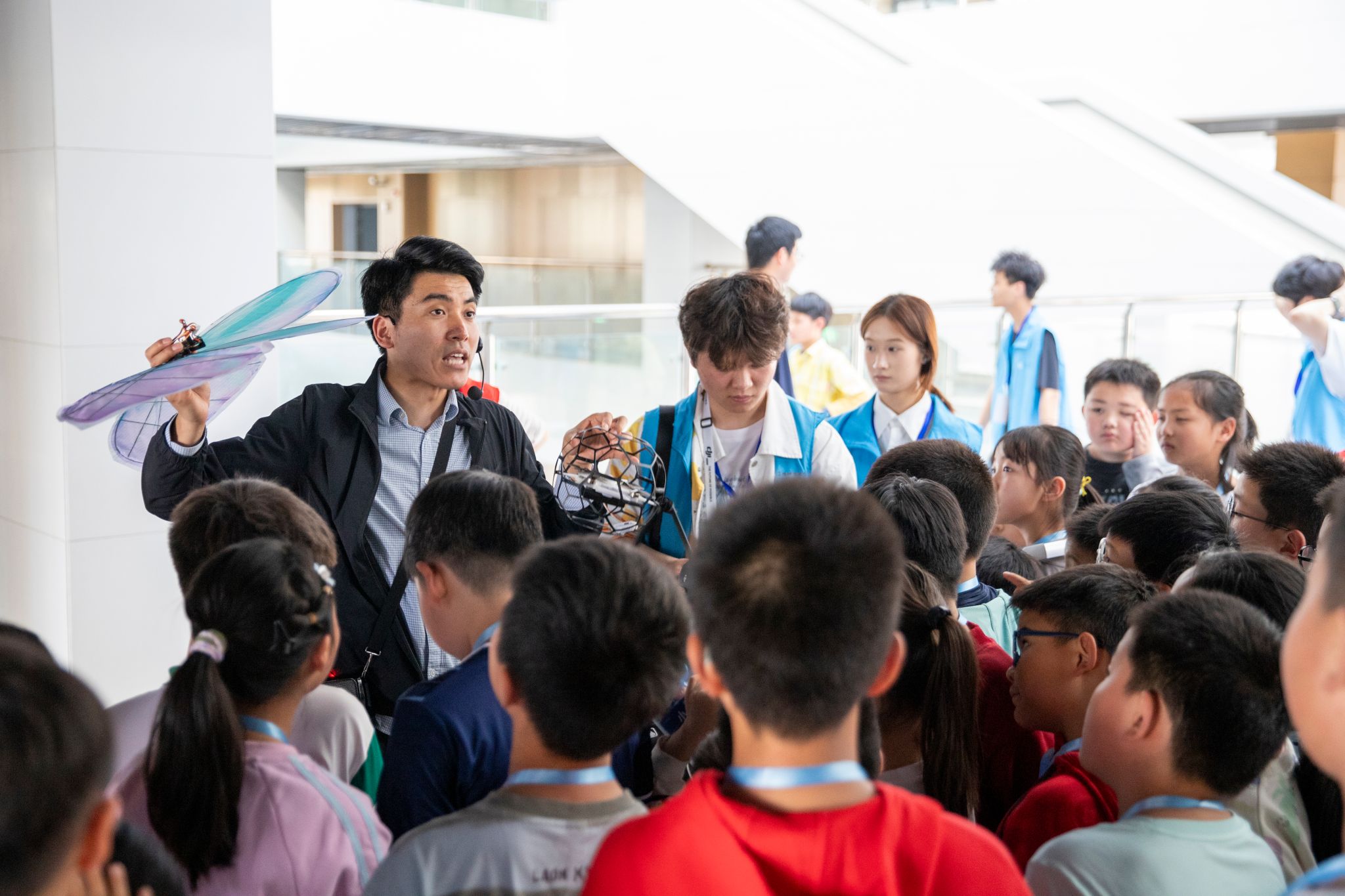 韩天鹏介绍了计算机与信息工程学院的学科优势及人工智能的发展前景。他表示,学院依托专业的师资力量、先进的实验场所和中国科协大学生志愿服务团队,精心设计了编程积木创意搭建、无人机体验和机器人体验等趣味工坊,希望孩子们通过动手实践感受科技魅力,在心中种下科学的种子,努力成为未来的“科学家”。
