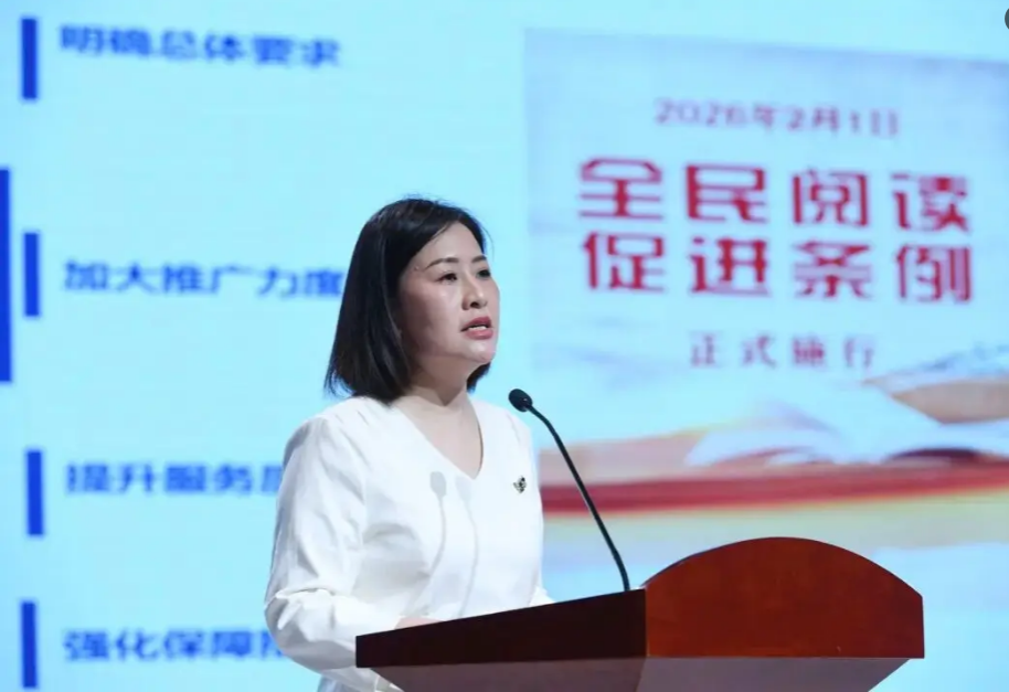 王萍从政治要求、时代变化、国家战略三个维度阐述了条例颁布的背景,解读了该条例是我国首部专门为促进阅读而制定的法规,标志着全民阅读从“政策引导”迈入“法治保障”的新阶段,通过“明确大方向、气氛活起来、服务做扎实、群体全覆盖”四个维度,阐释了条例的主要内容。她还结合阜阳深厚的文化底蕴,论证了“书香阜阳”的历史渊源,以及阜阳市阅读推广方面取得的积极成效,并呼吁全社会以条例实施为契机,让阅读融入日常生活,助力阜阳成为一座因书香而更有温度、更有气质、更有力量的城市。