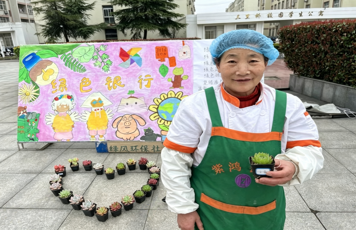 活动前期,绿风环保社周密筹备、广泛宣传,积极参与手绘环保主题海报,在校园内定点宣传,广泛传递“变废为宝、绿色生活”理念。活动当天,各兑换点秩序井然、氛围热烈。社员们耐心引导同学们投递废品、核算积分,用可回收物品兑换多肉等绿色盆栽。通过“以废换绿”的创新环保形式,让废品化身绿色生机,让环保理念落地校园。