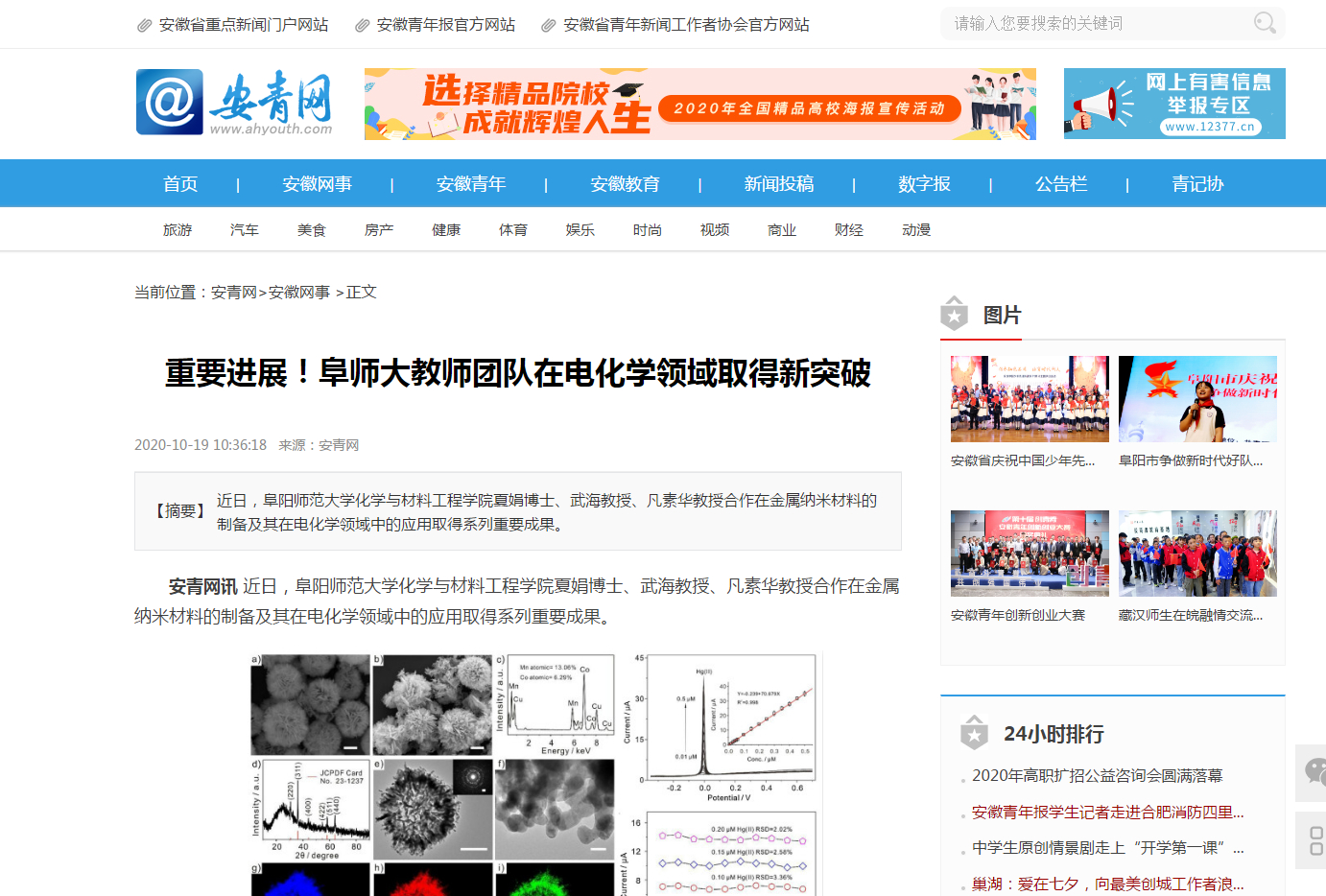 10月19日,安青网报道:重要进展!阜师大教师团队在电化学领域取得新突破。文章地址: