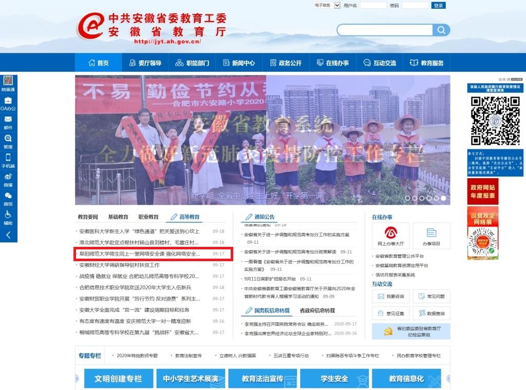 安徽教育网首页报道:阜阳师范大学师生同上一堂网络安全课 强化网络安全意识