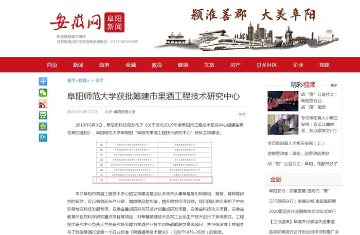 安徽网报道:阜阳师范大学获批筹建市果酒工程技术研究中心