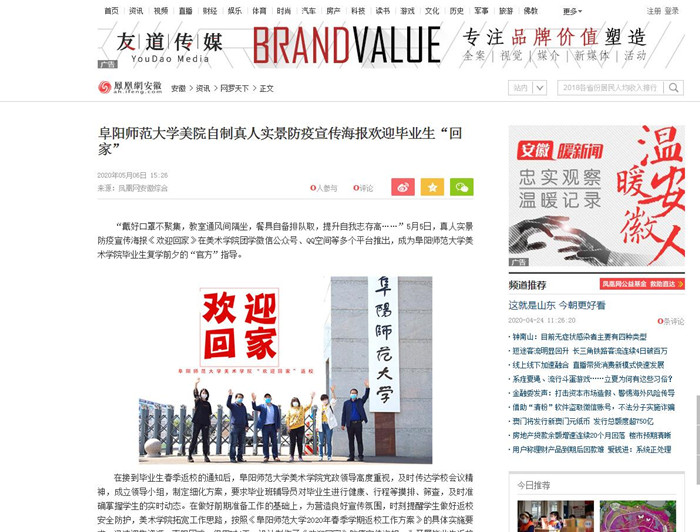 凤凰网报道:阜阳师范大学美院自制真人实景防疫宣传海报欢迎毕业生“回家”