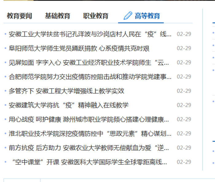 2月29日,安徽教育网首页报道阜阳师范大学师生党员踊跃捐款 心系疫情共克时艰。文章地址: