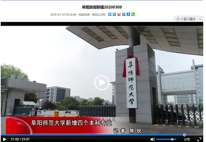 3月9日,阜阳电视台报道:阜阳师范大学新增4个本科备案专业。文章地址:
