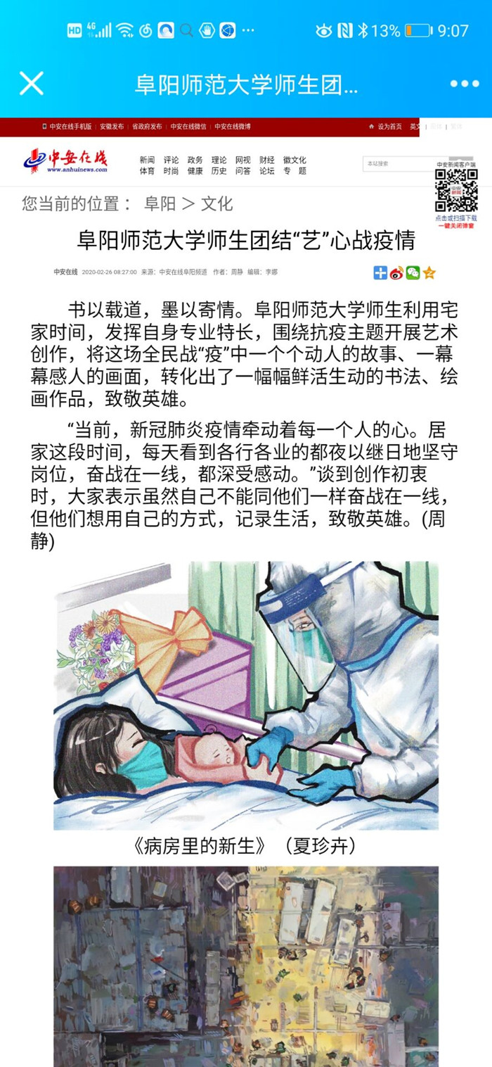 【疫情防控】中安在线报道:阜阳师范大学师生团结“艺”心战疫情