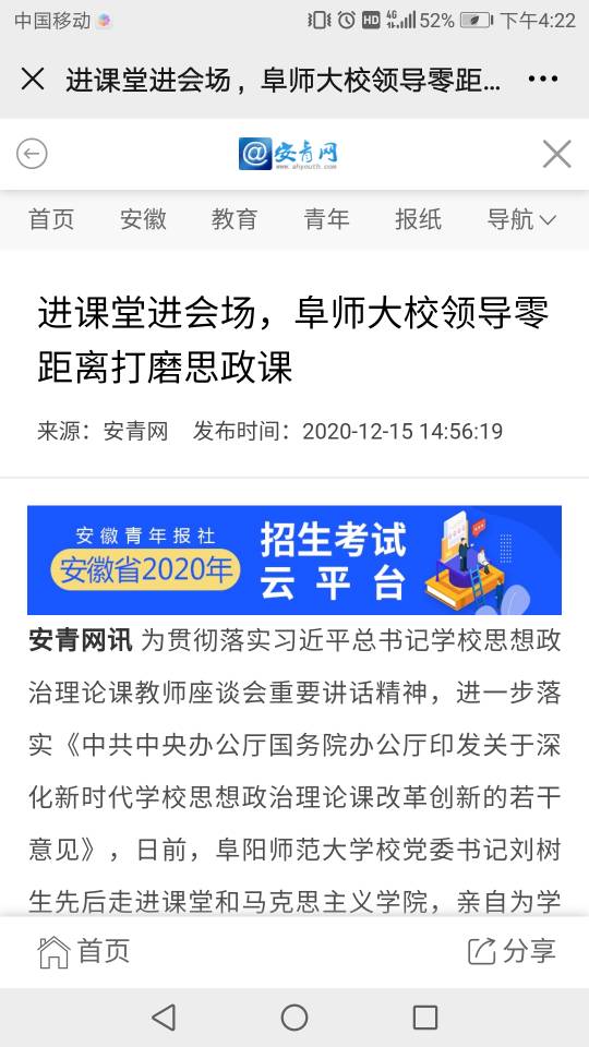 12月15日,安青网报道:进课堂进会场,阜师大校领导零距离打磨思政课。文章地址: