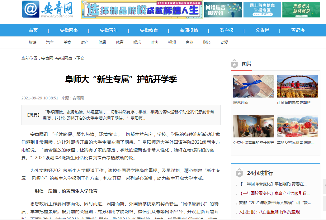 9月29日,安青网报道:阜师大“新生专属”护航开学季。文章地址: