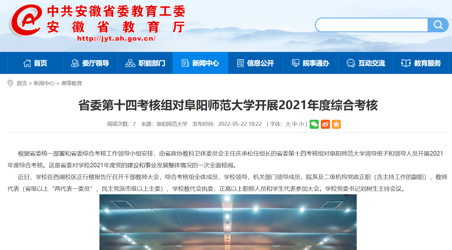 安徽教育网报道:省委第十四考核组对阜阳师范大学开展2021年度综合考核