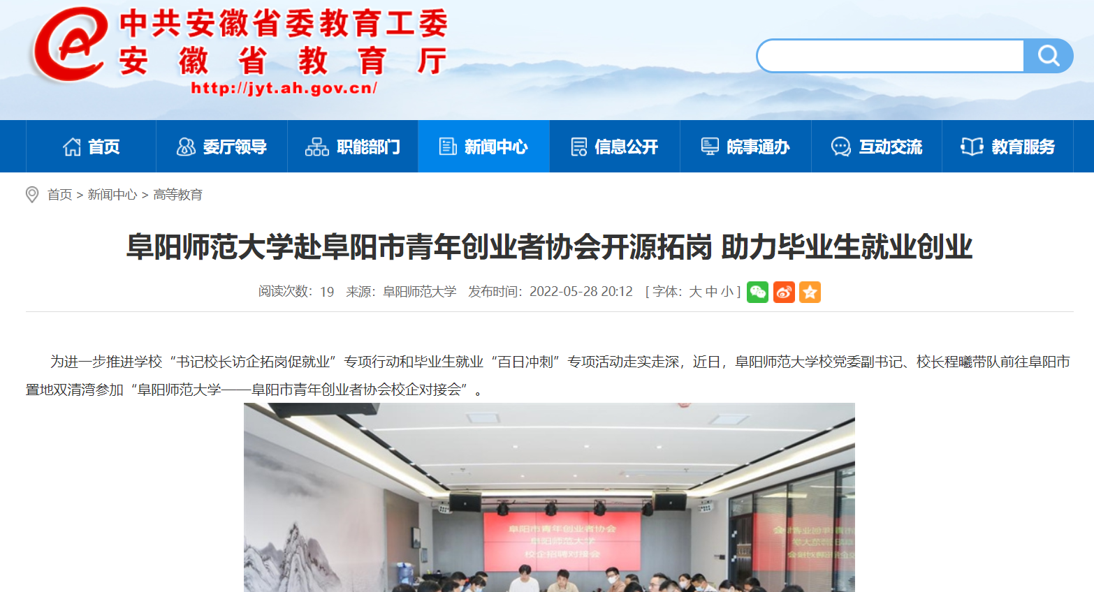 安徽教育网报道:阜阳师范大学赴阜阳市青年创业者协会开源拓岗 助力毕业生就业创业