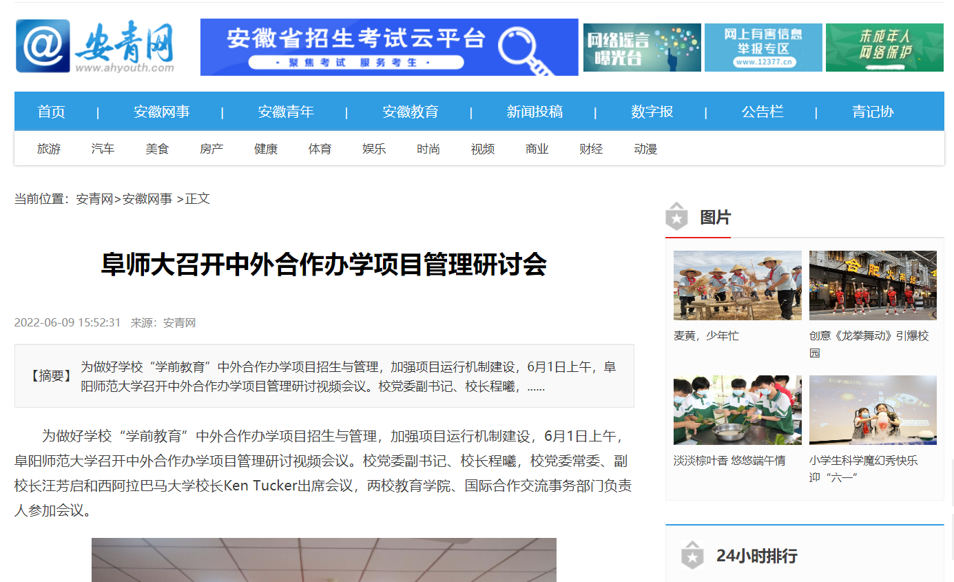 6月9日,安青网报道:阜师大召开中外合作办学项目管理研讨会。文章地址: