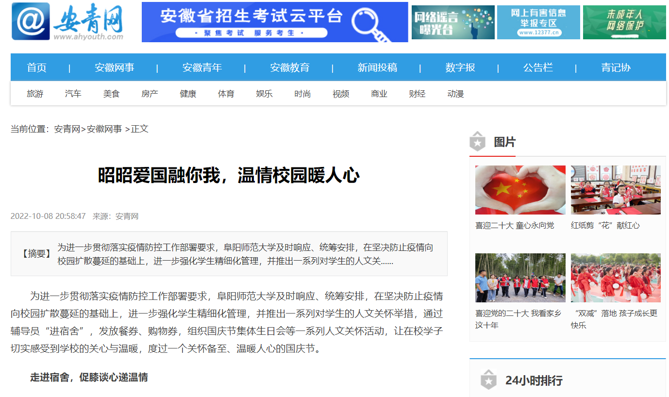 10月8日,安青网报道:昭昭爱国融你我,温情校园暖人心。文章地址:
