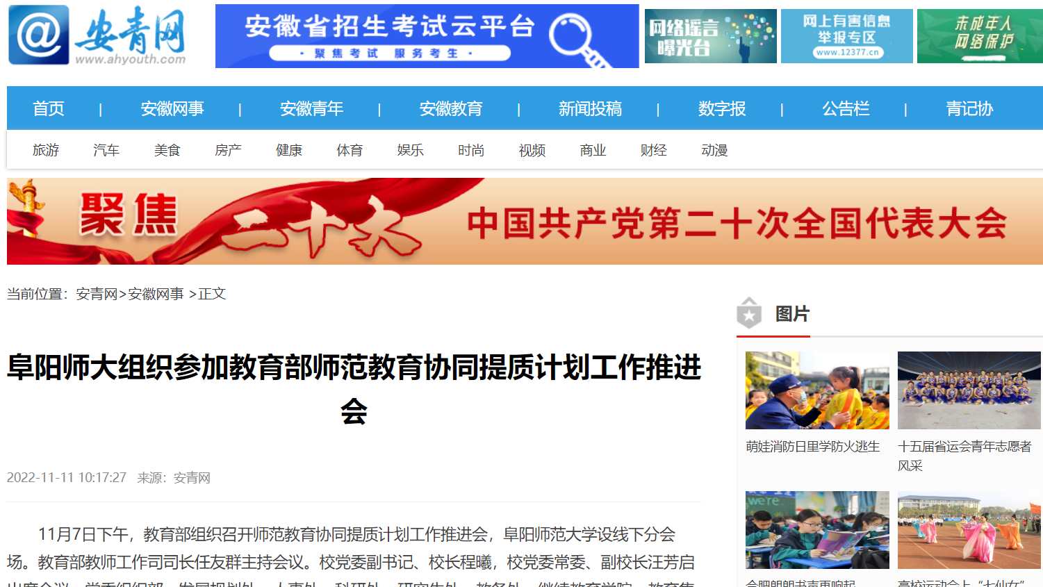11月11日,安青网报道:阜阳师大组织参加教育部师范教育协同提质计划工作推进会。文章地址: