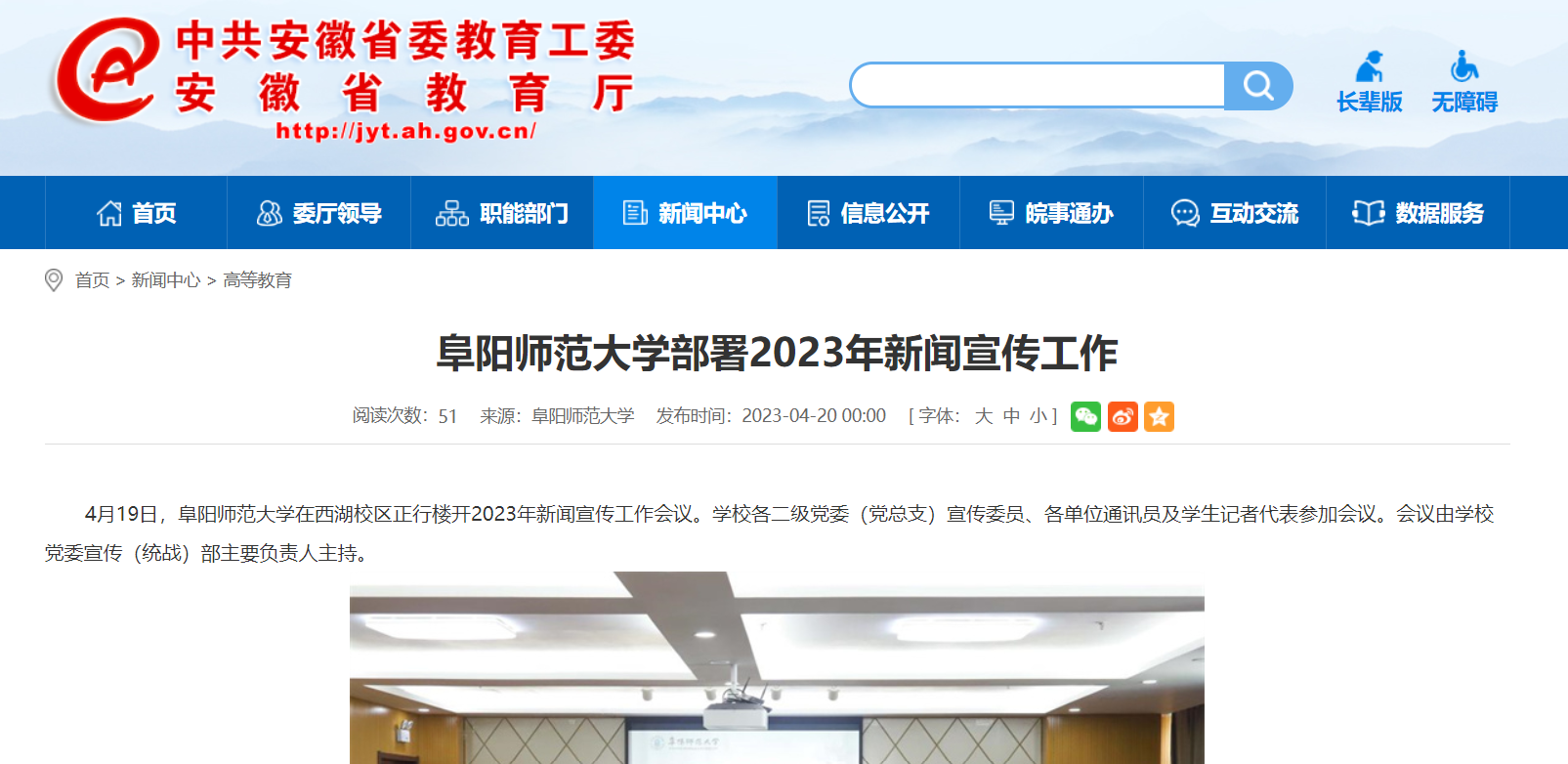 安徽教育网报道:阜阳师范大学部署2023年新闻宣传工作