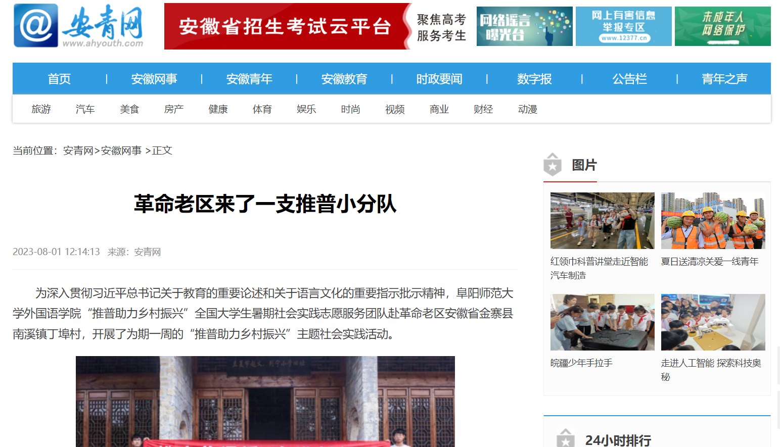 8月01日,安青网报道:革命老区来了一支推普小分队。文章地址: