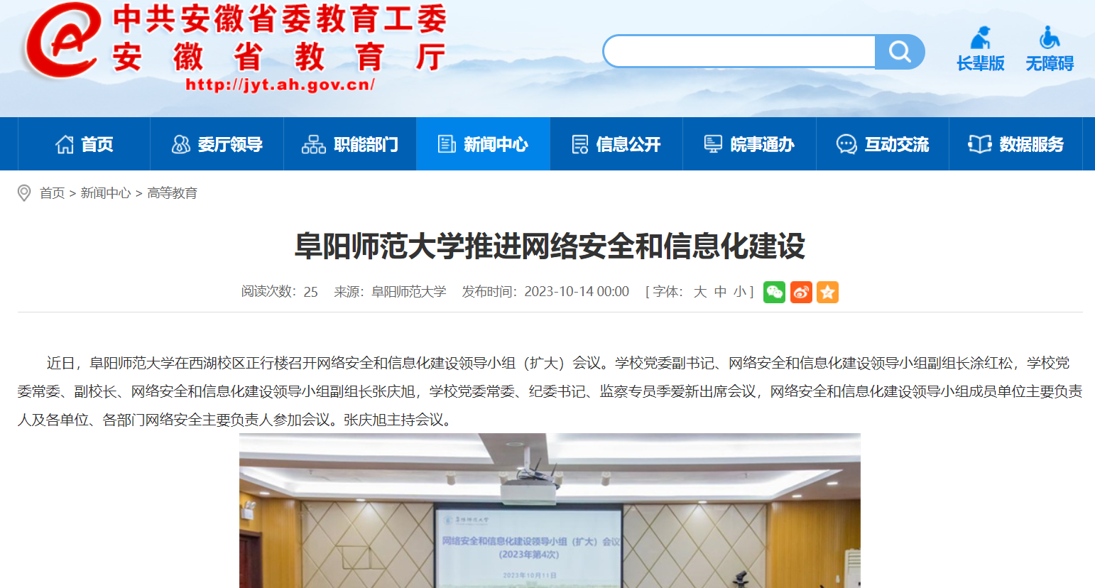 安徽教育网报道:阜阳师范大学推进网络安全和信息化建设