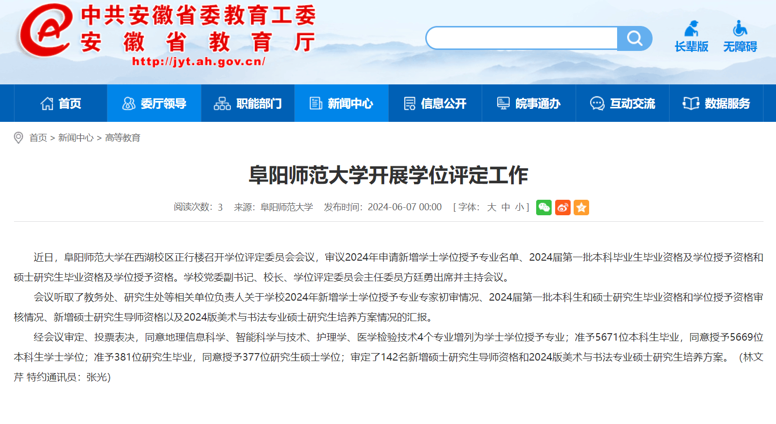 安徽教育网报道:阜阳师范大学开展学位评定工作