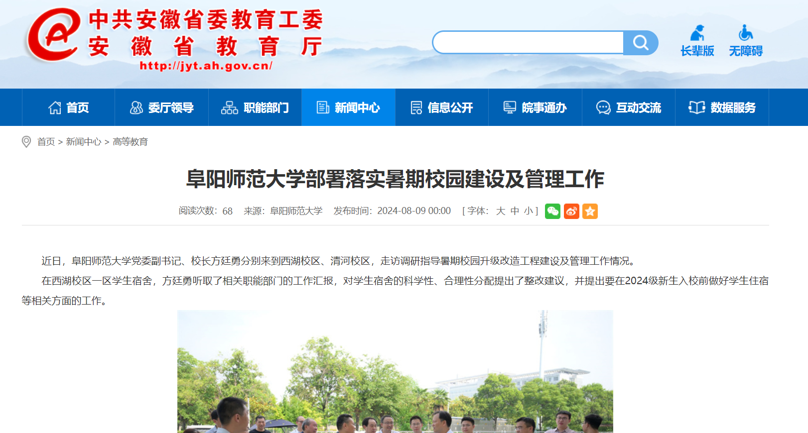 安徽教育网报道:阜阳师范大学部署落实暑期校园建设及管理工作