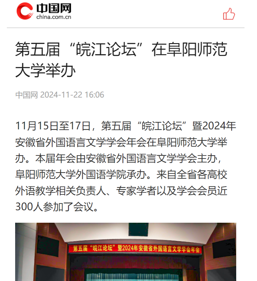 10月22日,中国网报道:第五届“皖江论坛”在阜阳师范大学举办。文章地址: