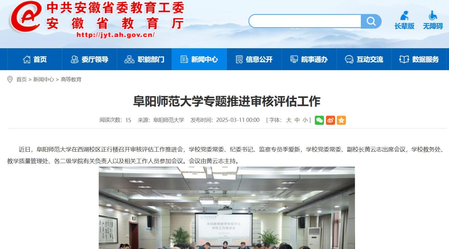 安徽教育网报道:阜阳师范大学专题推进审核评估工作