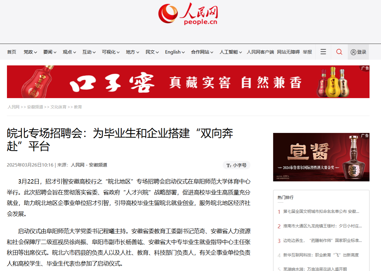 人民网报道:为毕业生和企业搭建“双向奔赴”平台