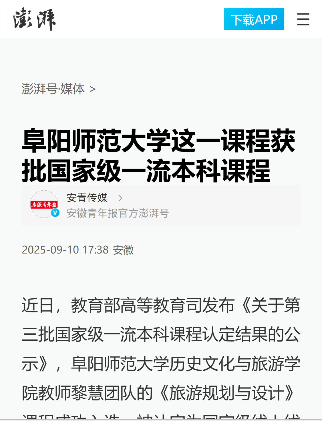 澎湃新闻客户端报道:阜阳师范大学这一课程获批国家级一流本科课程