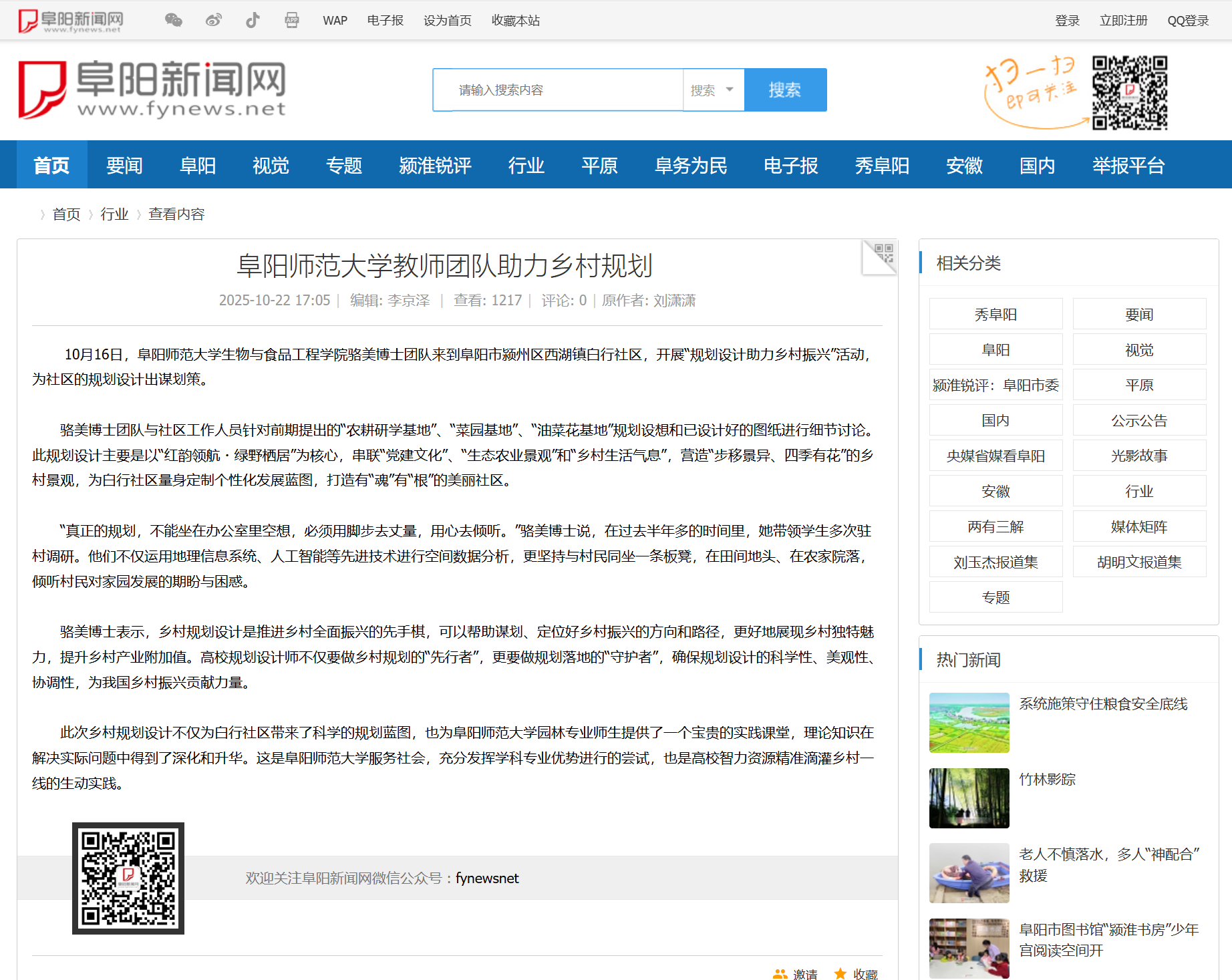阜阳新闻网报道:阜阳师范大学教师团队助力乡村规划