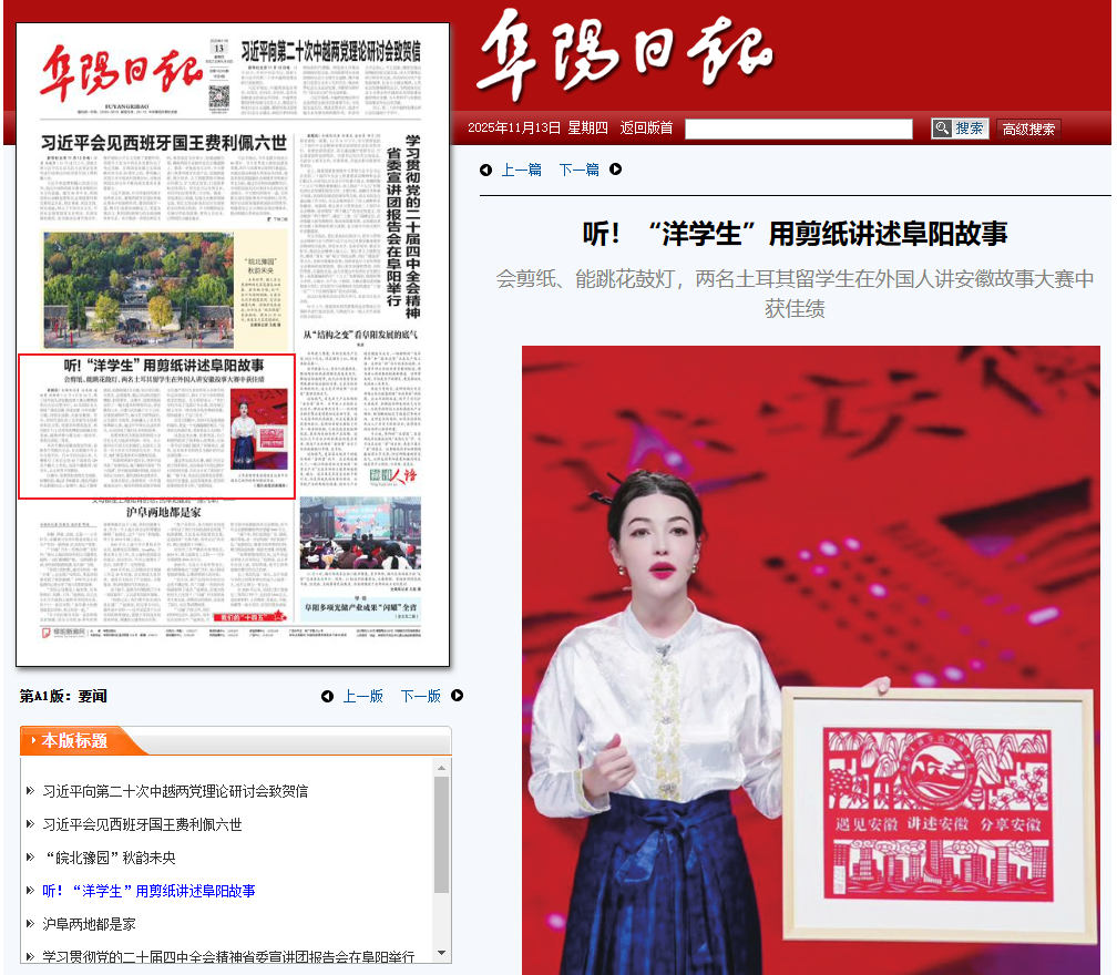 11月13日,阜阳日报报道:听!“洋学生”用剪纸讲述阜阳故事。文章地址:http://test.fynews.net/epaper/read.do?m=i&iid=4338&eid=37708&sid=129585