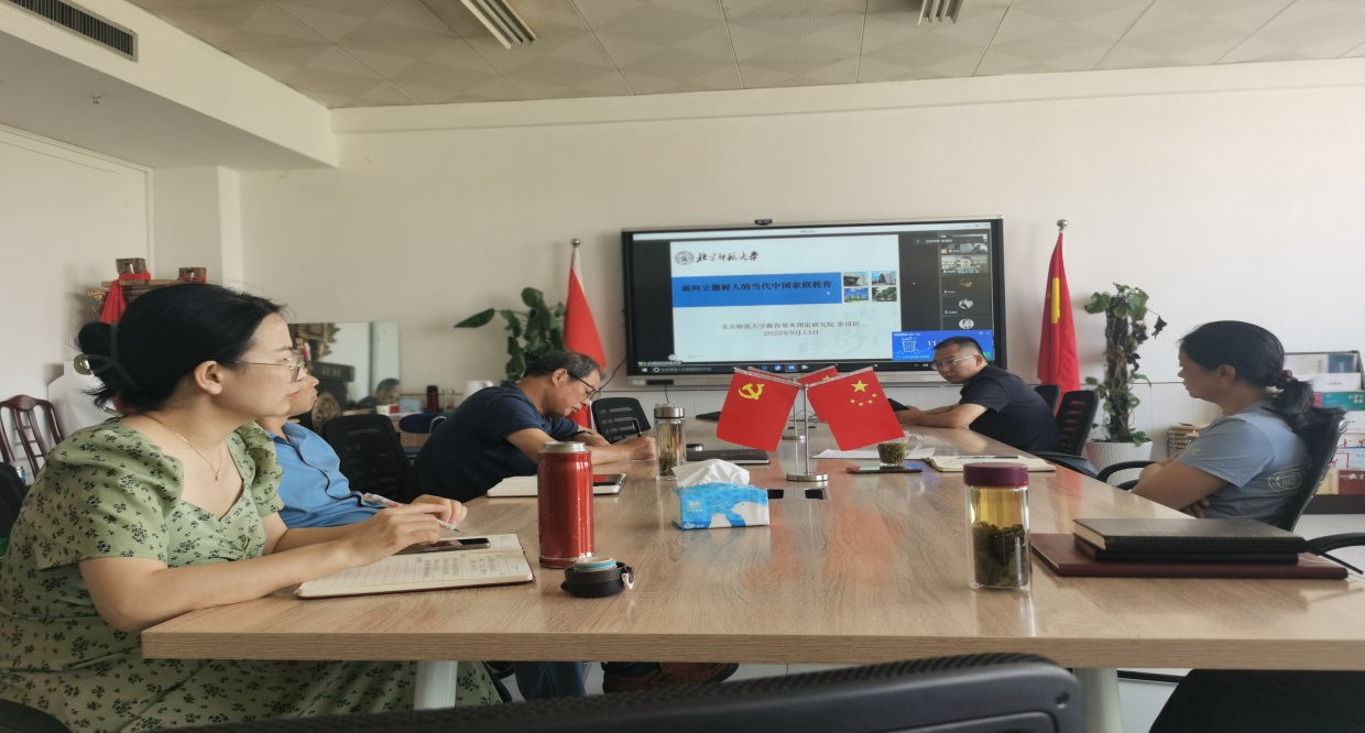 在教育学院建院20周年即将来临之际,为进一步增强师生的学术研究水平与能力,加强学术研讨与交流,9月13日下午,教育学院“庆祝建院二十周年系列学术报告”特邀北京师范大学教育基本理论研究院院长余清臣教授,作题为《面向立德树人的当代中国家庭教育》学术讲座。报告会通过腾讯会议的线上方式进行,并在景行楼802会议室设置了分会场,教育学院教师、研究生与部分本科生聆听了本场报告会。