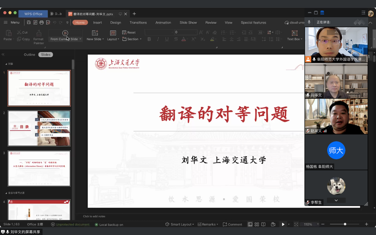 11月8日,外国语学院邀请上海交通大学博士生导师刘华文教授为全体师生做了题为“翻译的对等问题”专题讲座。讲座由外国语学院院长赵从义主持。