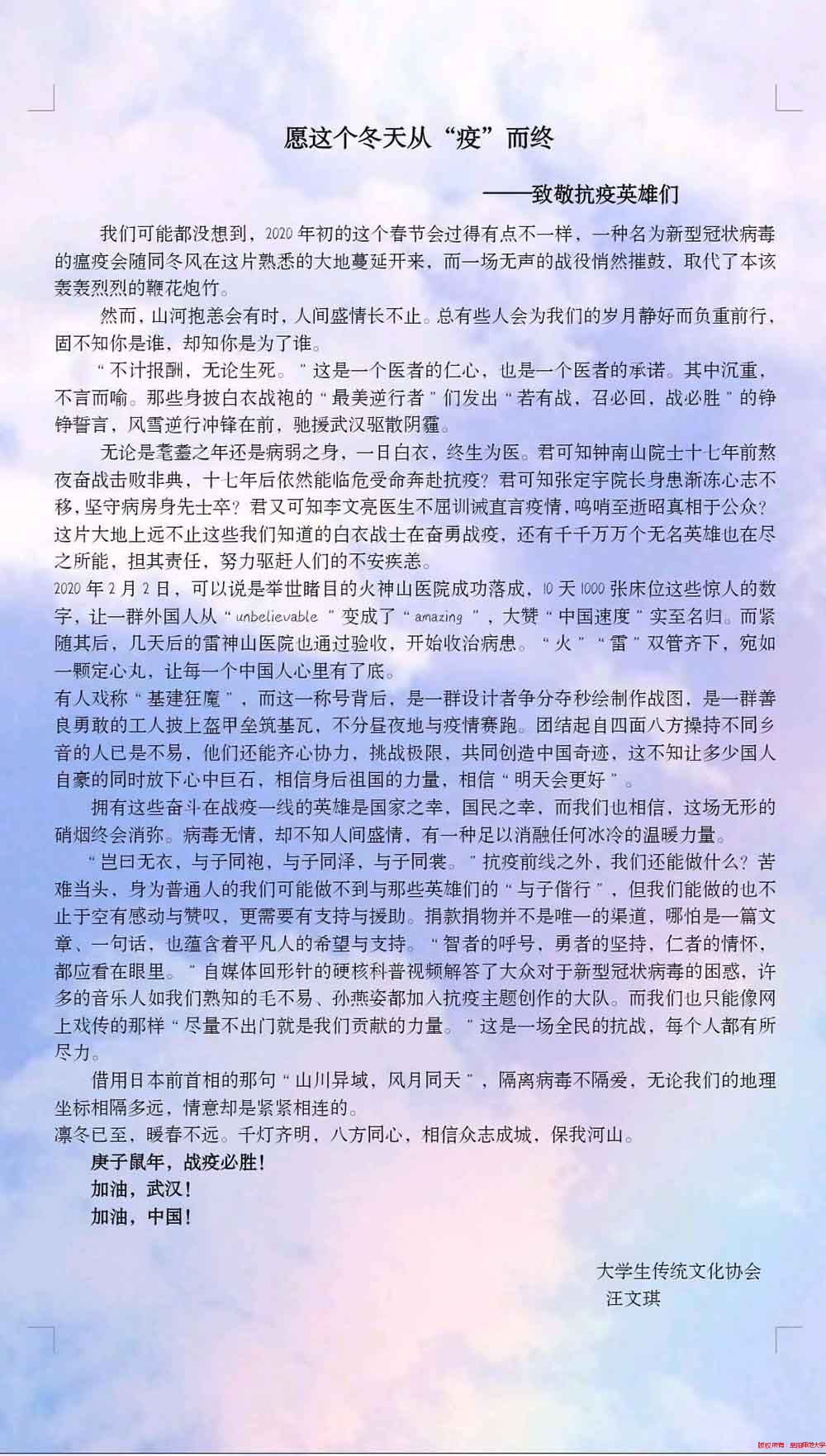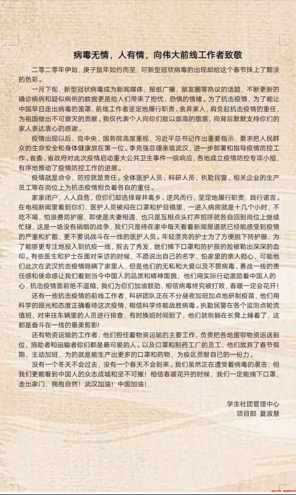 【疫情防控】全校学生社团:抗“疫”之战,我们一起打赢