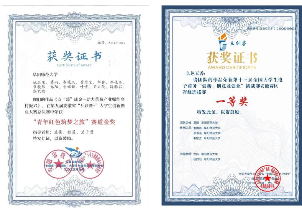 在大学期间,她多次荣获优秀学生一等奖学金、二等奖学金,校长奖学金,三好学生等荣誉。2021年在大学生英语竞赛中荣获C类三等奖,2022年在第八届安徽省“互联⽹+”大学生创新创业⼤赛中荣获铜奖,2024年荣获“安徽省优秀毕业生”、“阜阳师范大学优秀毕业生”、“阜阳师范大学优秀实习生”等荣誉称号。
