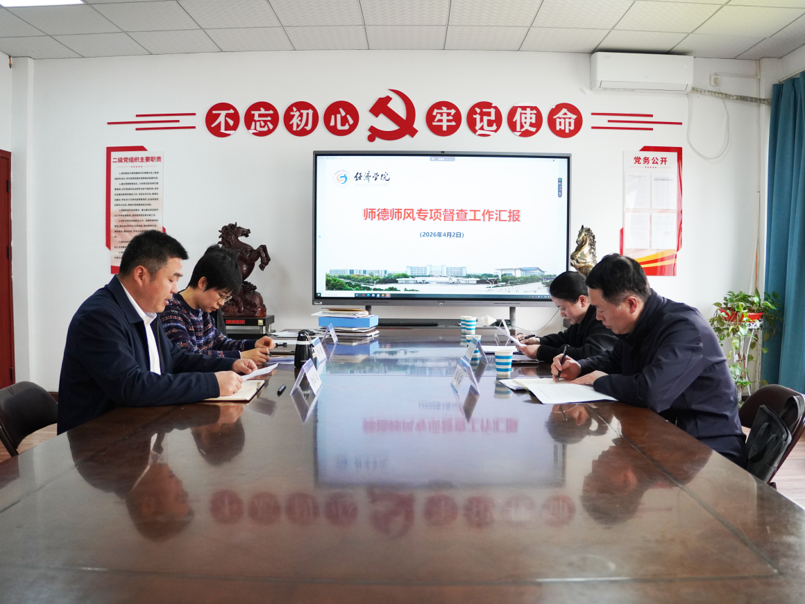 4月2日上午,校党委常委、党委组织部部长、师德专项调研督查组组长包春雷一行莅临经济学院,开展师德师风建设专项督查。经济学院党委副书记、院长余许友,党委副书记李阳及相关教师在清河校区东小楼 209 会议室汇报工作。