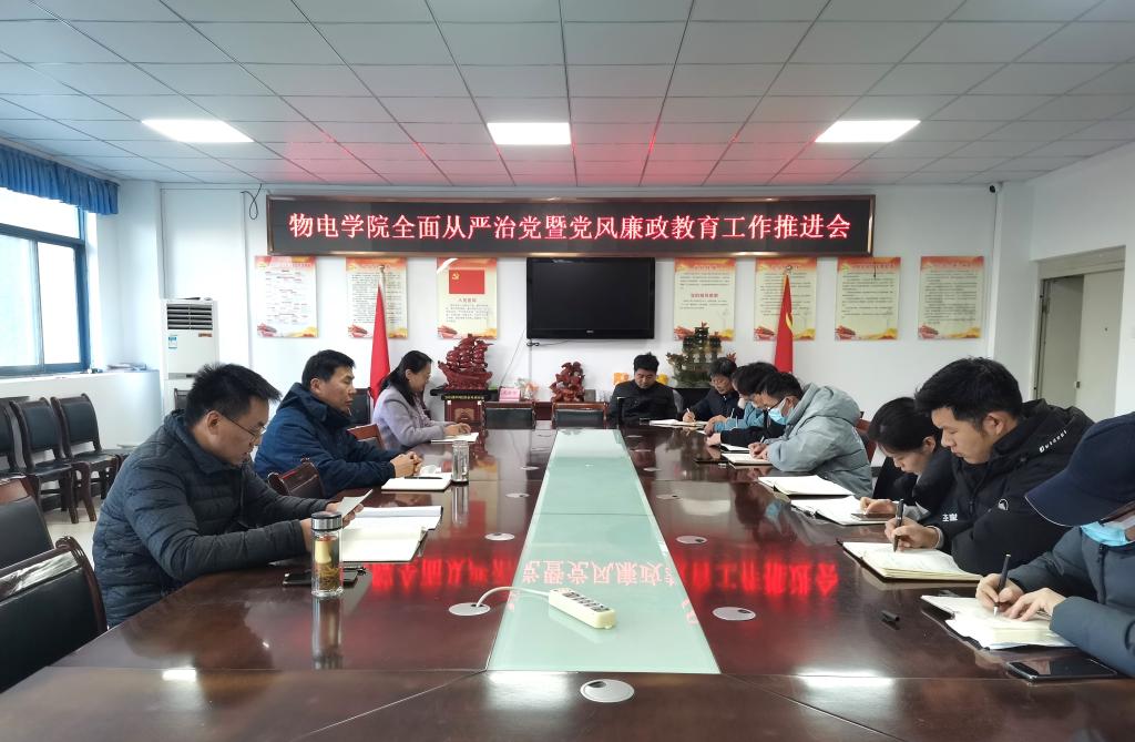 12月1日,物理与电子工程学院全面从严治党暨党风廉政教育工作推进会在躬行c楼306会议室召开,学院领导班子成员、科级干部、各党支部书记、纪检委员参加了会议,会议由学院党委书记吴学军主持。