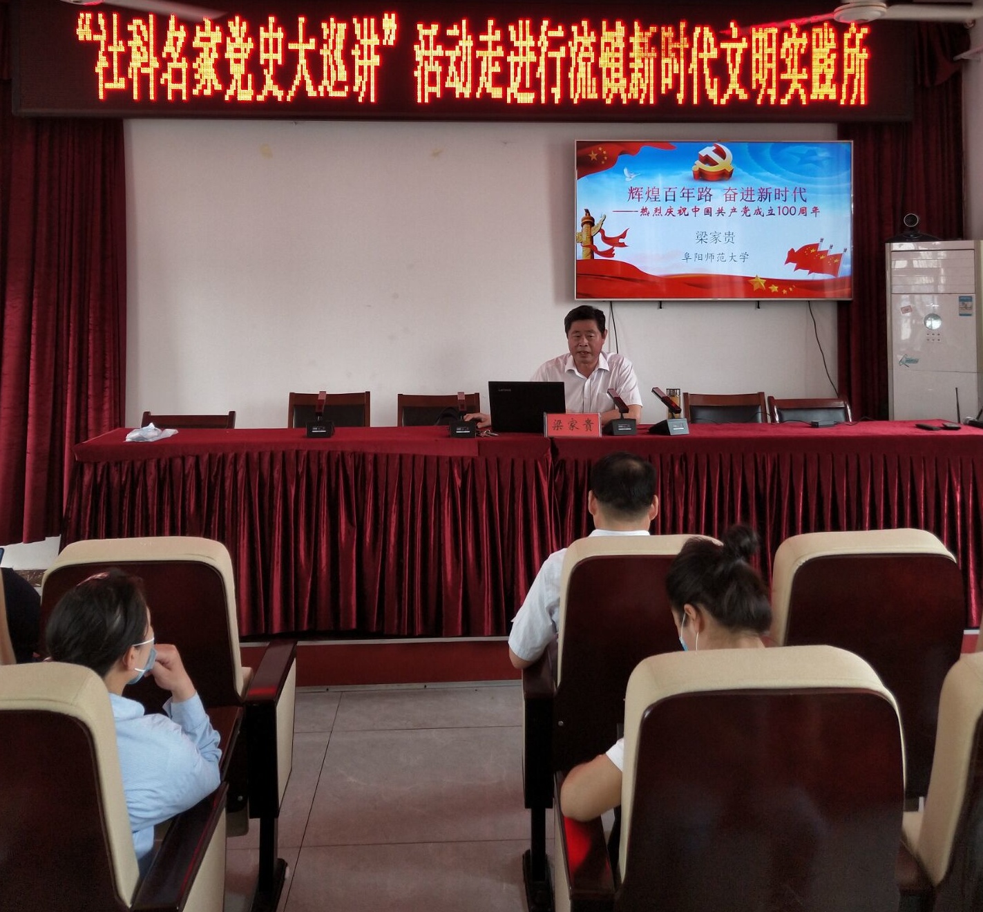 梁家贵首先阐述了开展党史学习教育的背景、目的、重要意义,以及学习重点,然后梳理了中国共产党百年辉煌成就,并归结出四点启示。