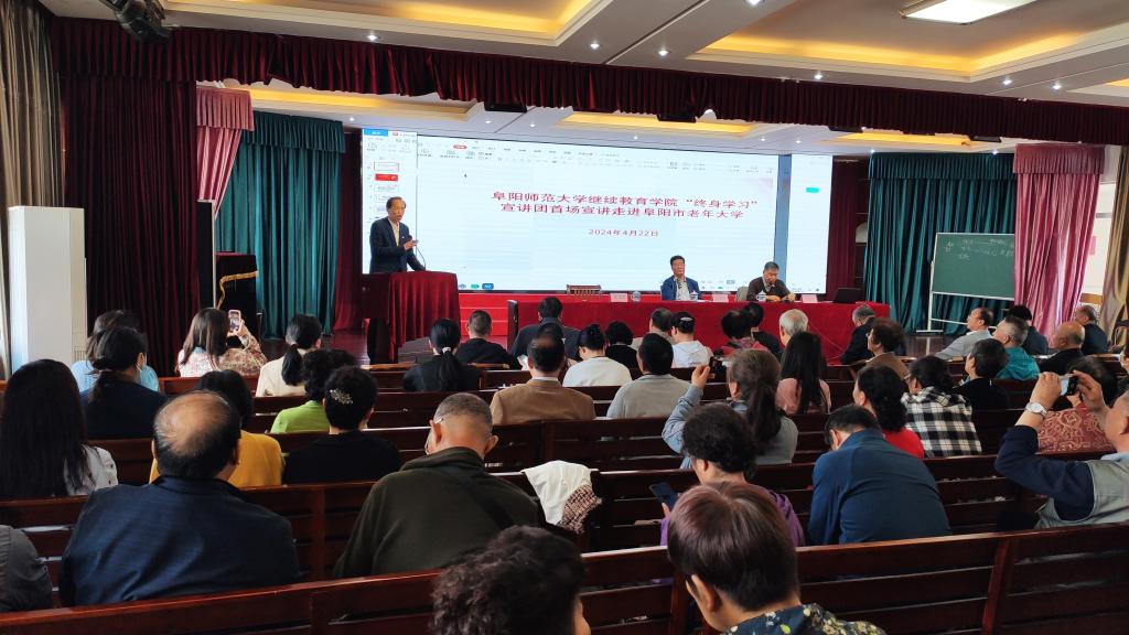 4月22日上午,机关党委继续教育学院和学报党支部“终身学习宣讲团”“终身学习志愿服务队”成立暨首场宣讲在阜阳市老年大学举行。