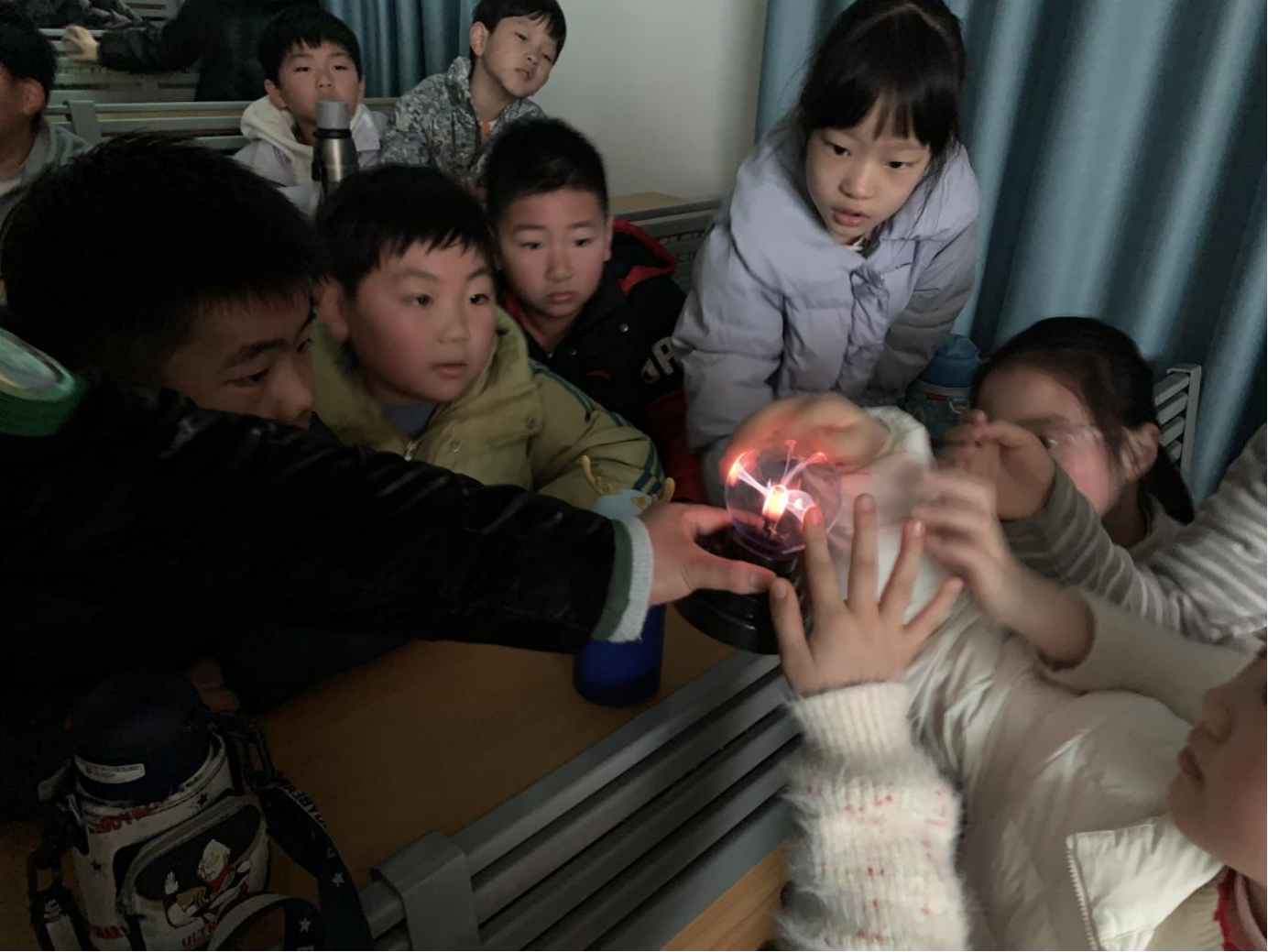 活动现场,四大趣味电学实验环节依次登场,将抽象的电学知识转化为可触可感的实践体验,让孩子们在互动中感受科学的奇妙魅力。人体导电灯泡实验中,孩子们手拉手结成“导电链”,当电流顺畅传导、灯泡骤然亮起的瞬间,现场欢呼声此起彼伏,大家亲眼见证了电流的神奇力量;等离子静电球旁,孩子们好奇地伸出小手轻轻触摸,绚烂的放电光芒在指尖流转,引得阵阵惊叹,直观感受静电的奇幻现象;静电飞花环节里,孩子们亲手操作,用摩擦过的气球靠近纸屑,看着“雪花”纷纷起舞,在动手实践中探寻吸附现象的科学原理;静电章鱼互动中,通过摩擦让塑料丝与塑料管带上同种电荷,基于“同种电荷相互排斥”的科学规律,塑料丝缓缓散开、悬浮空中,化作一只只灵动的“静电章鱼”,让孩子们在趣味观察中理解核心电学知识。每个环节都预留了充足的参与空间,在老师的耐心指导下,孩子们大胆尝试、细心观察,在实践探索中解锁电学密码,将科学知识深深烙印在心中。