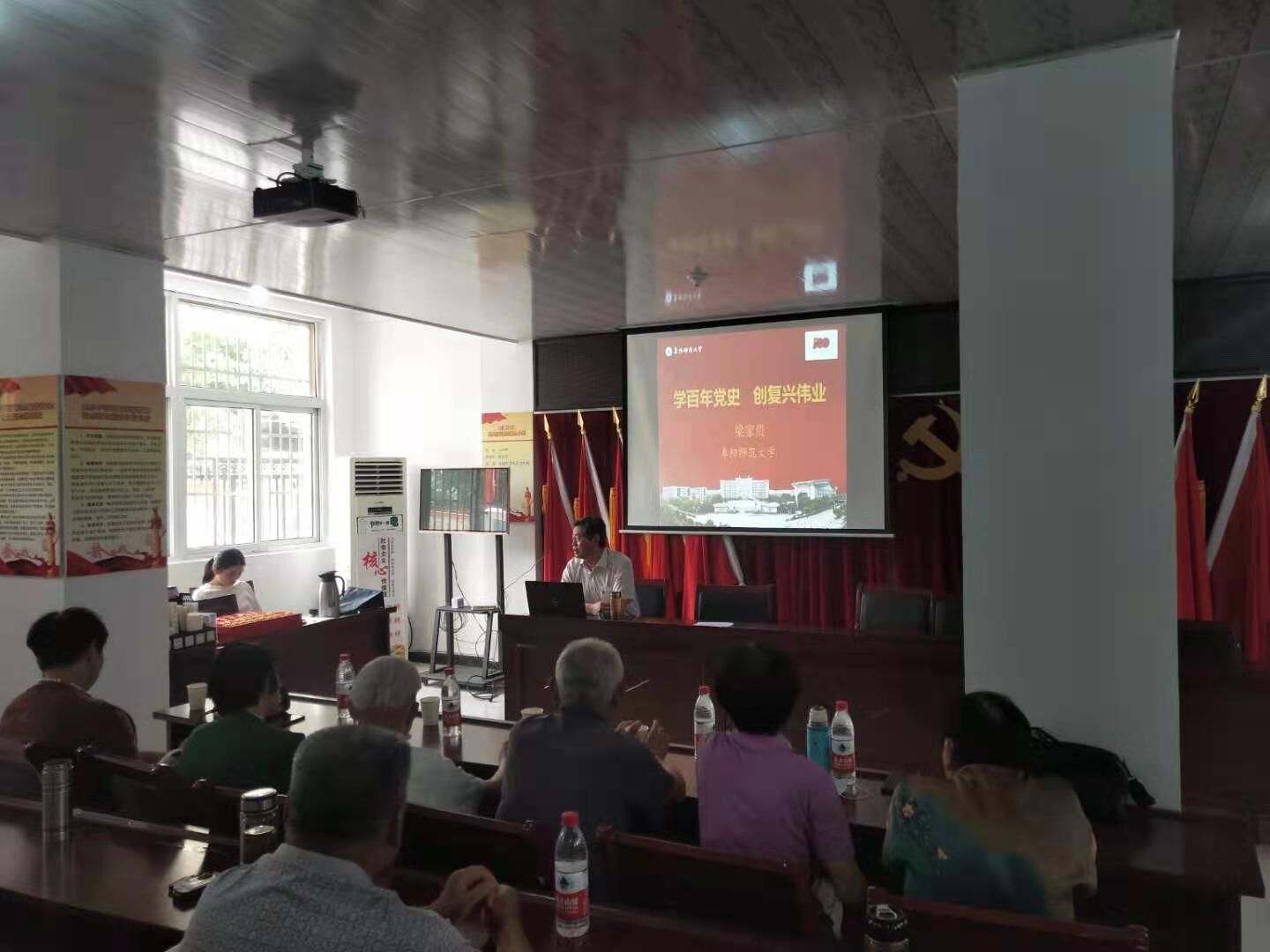 梁家贵作了《学百年党史 创复兴伟业》的主题宣讲。他以大量史料、丰富图片,并紧密结合阜阳历史,从“深入学习领会习近平总书记重要讲话精神,充分认识开展党史学习教育的重大意义”“认真研读党史基本著作,全面了解中国共产党百年奋斗的光辉历程和历史性成就”“深刻把握开展党史学习教育的重点”,以及“学懂弄通做实习近平新时代中国特色社会主义思想,增强‘四个意识’,坚定‘四个自信’,做到‘两个维护’”4个方面,用通俗易懂的语言、简洁生动的党史故事,让现场党员接受了一次深刻的党史教育。