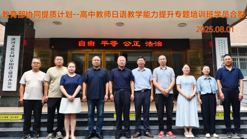 8月1日上午,教育部协同提质计划“高中教师日语教学能力提升”专题培训班开班仪式在阜阳师范大学清河校区举行。本次培训旨在为临泉县高中日语教师提供为期20天的定制化研修课程。继续教育学院院长王健,外国语学院院长赵从义、副院长高福猛以及临泉县田家炳实验中学副校长姜江、教科处主任王志强和参训教师共同出席仪式。仪式由继续教育学院副院长王胜主持。