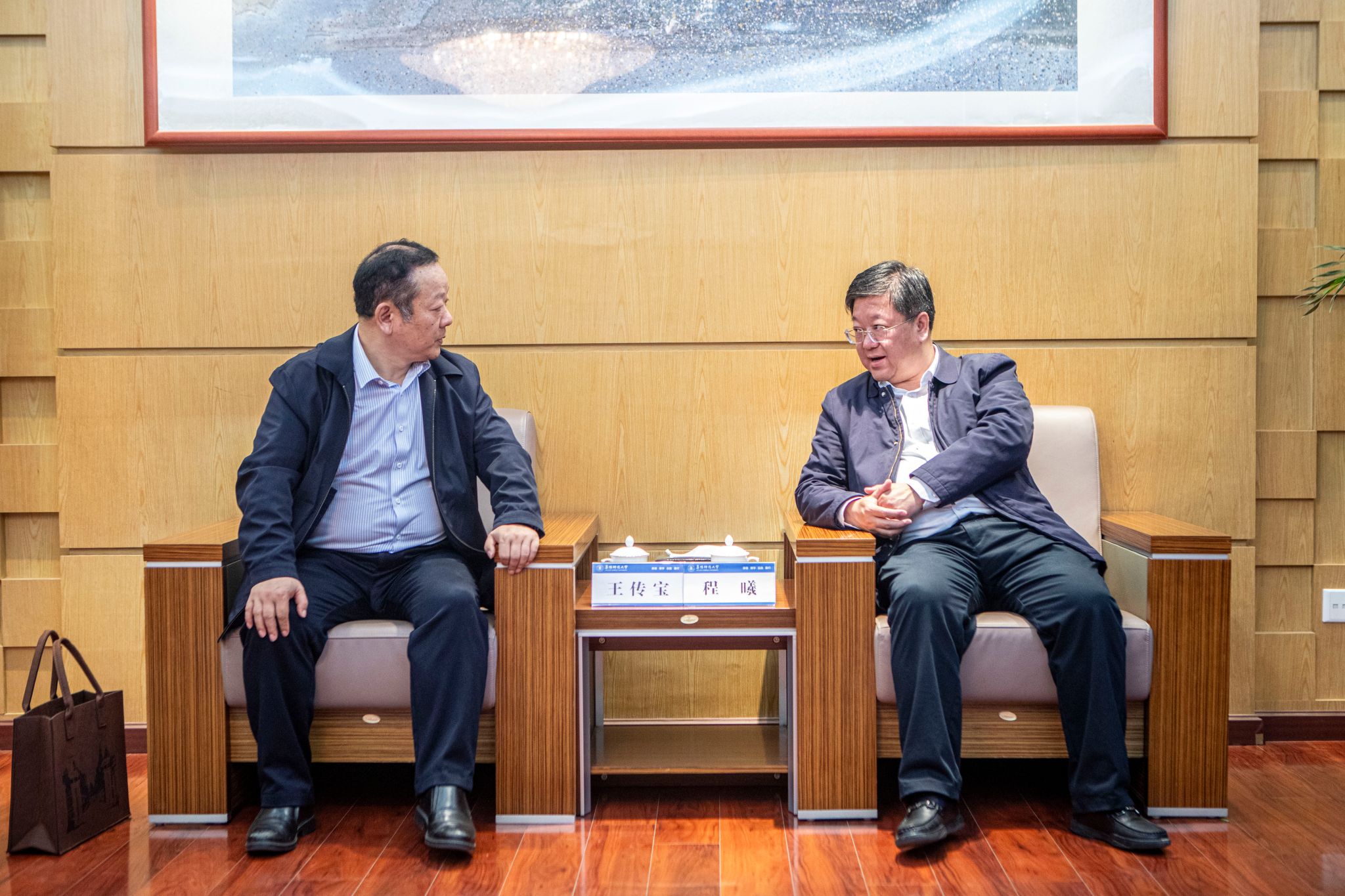 会见中,程曦对王传宝重返母校表示欢迎,并从学科建设、人才培养、科研创新等多方面介绍了学校近年发展情况。他表示,王传宝教授的来访,既强化了校友与母校的情感联结,也为校方积极开展思想政治和国防教育提供了新契机。